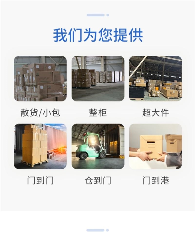 我们为您提供:散货/小包、整柜、超大件、门到门、仓到门、门到港。一站式物流专线服务。欢迎来电咨询,手机微信同号。